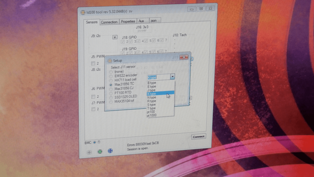 An easier solution is to use a thermocouple interface IC. The LD100 system supports the Maxim MAX31856 device. This device is available on an inexpensive (<$10) board from a multitude of suppliers. I bought a couple from ebay and all worked fine.