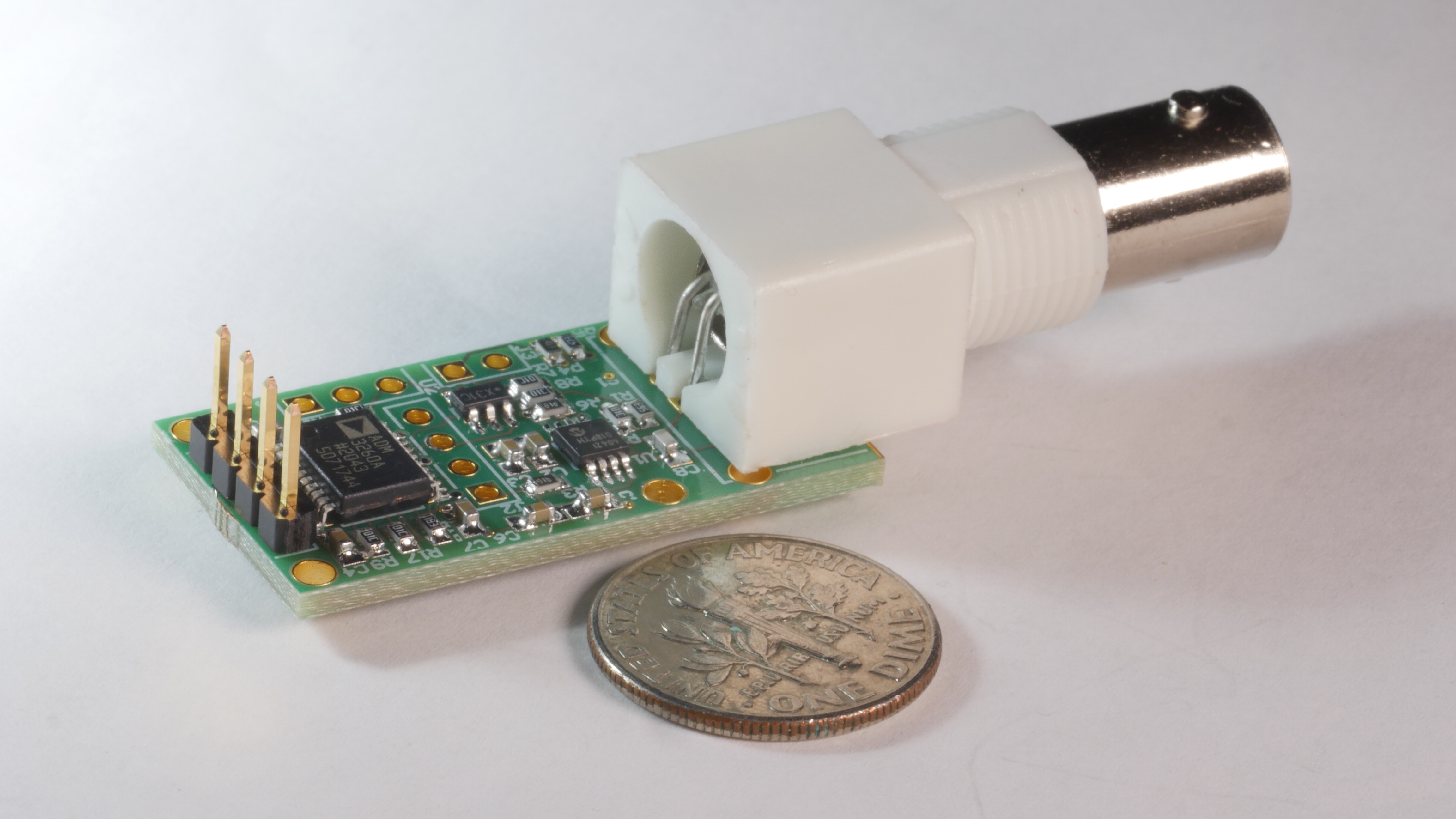 cAFE1 is a specially designed front end to handle electrochemical measurement cells and is default set-up for pH probes. A high impedance instrumentation amplifier with adjustable gain and offset is connected to a 12bit analog to digital converter. Controller connection is via an i2c interface. This is the non-isolated version. In the isolated version the board electronics is fully electrically isolated to prevent cross talk and leakage currents from interfering with measurements. We’re waiting for IC shipments to ship the isolated version.