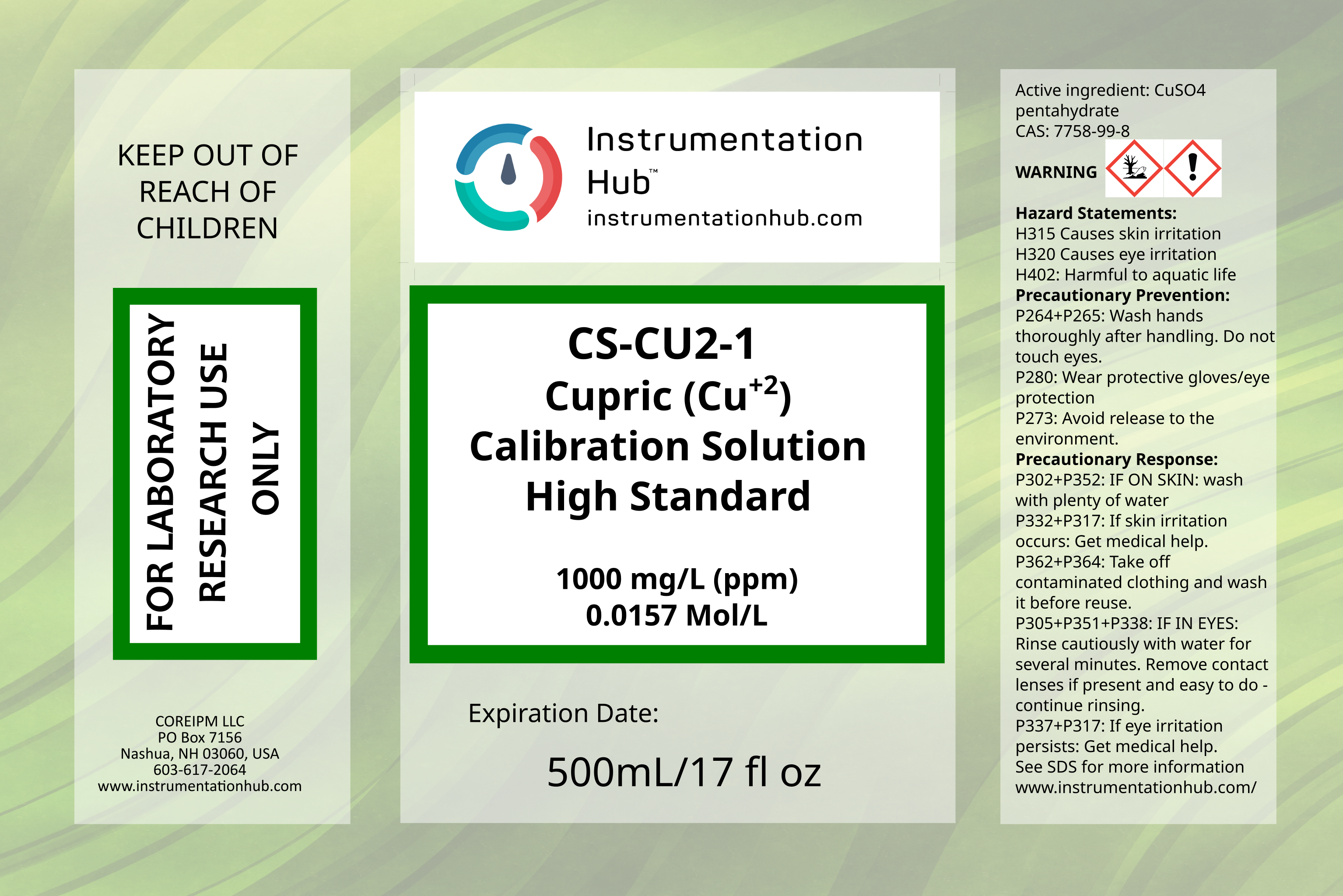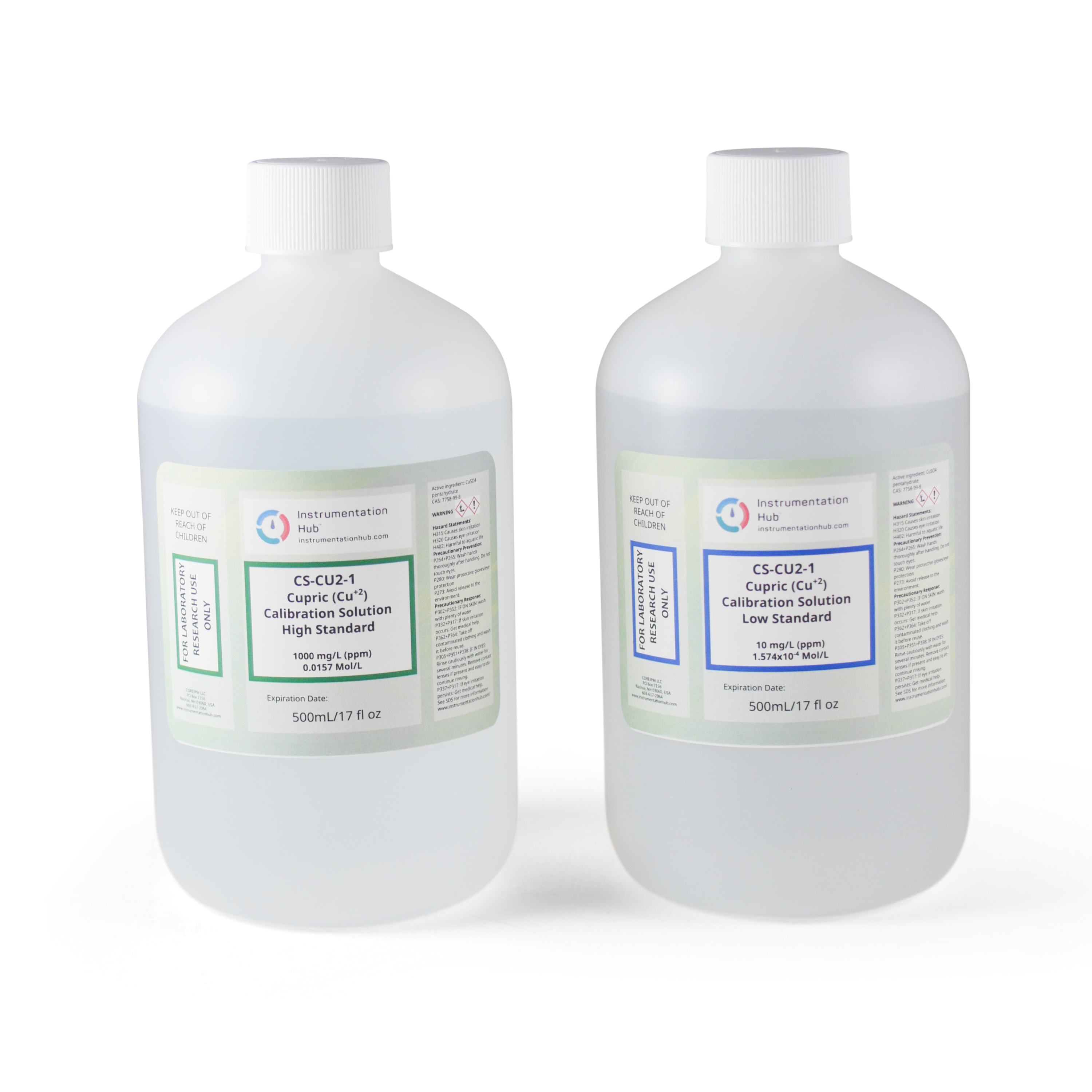 2 Point (High/Low) calibration solution set for Cu+2 Ion Selective Electrodes. 2x500mL