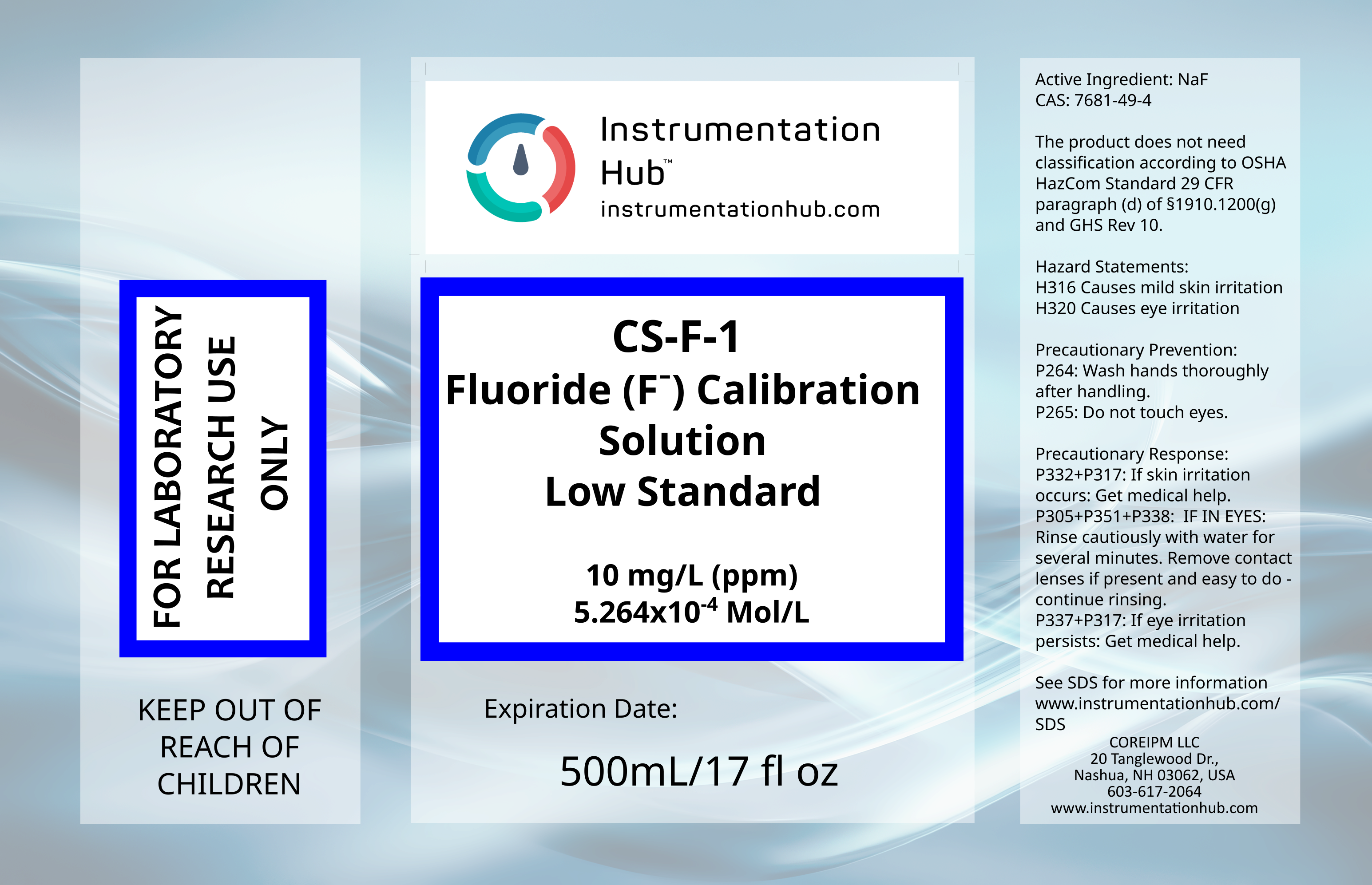 2 Point (High/Low) calibration solution set for F– Ion Selective Electrodes. 2x500mL