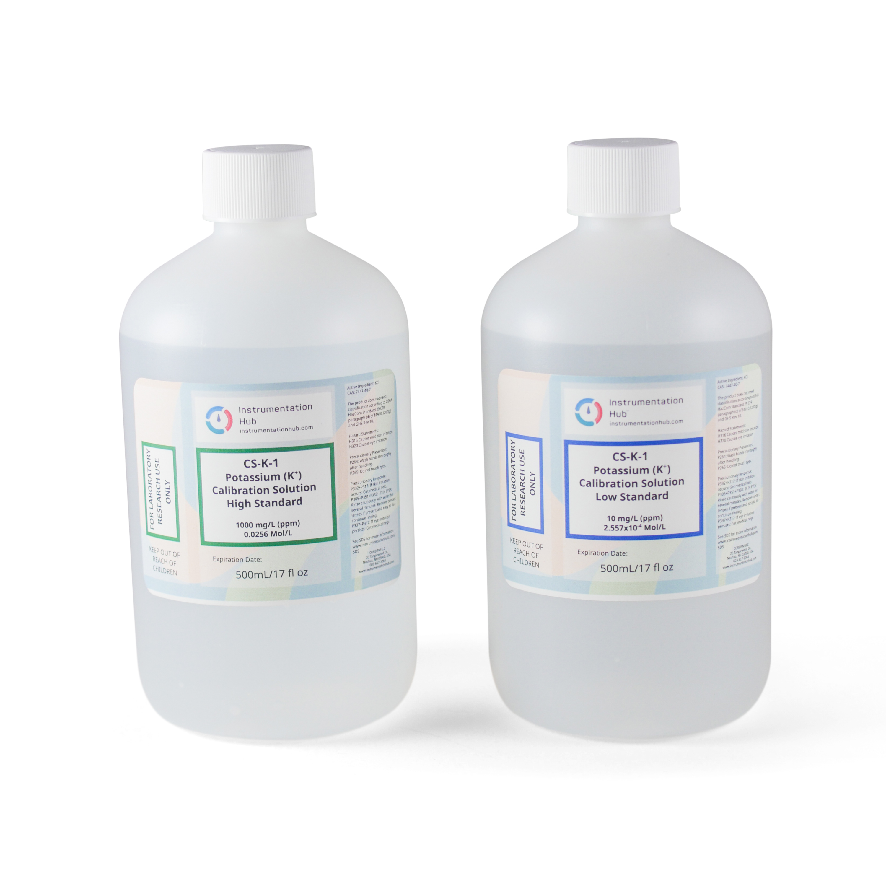 2 Point (High/Low) calibration solution set for K+ Ion Selective Electrodes. 2x500mL
